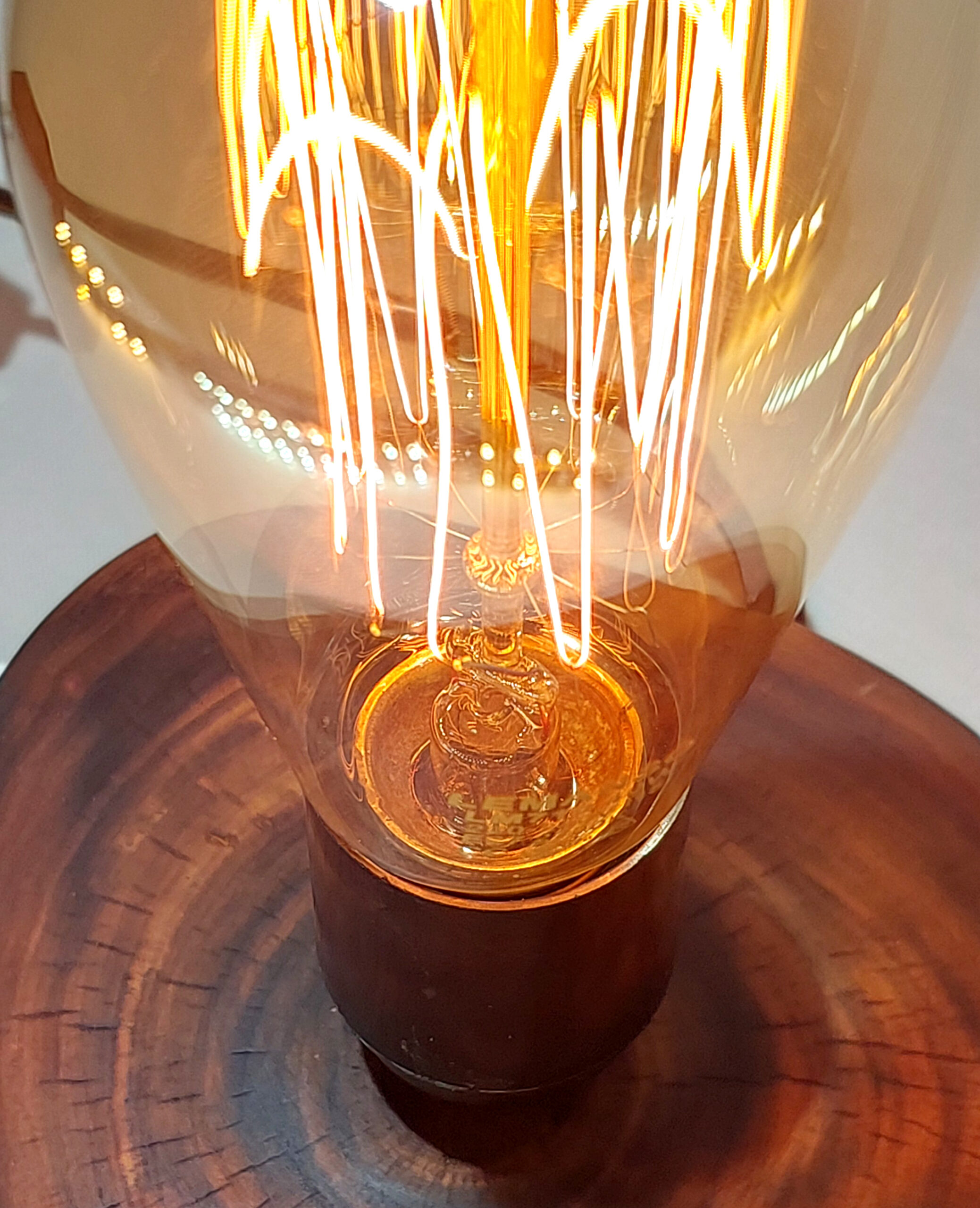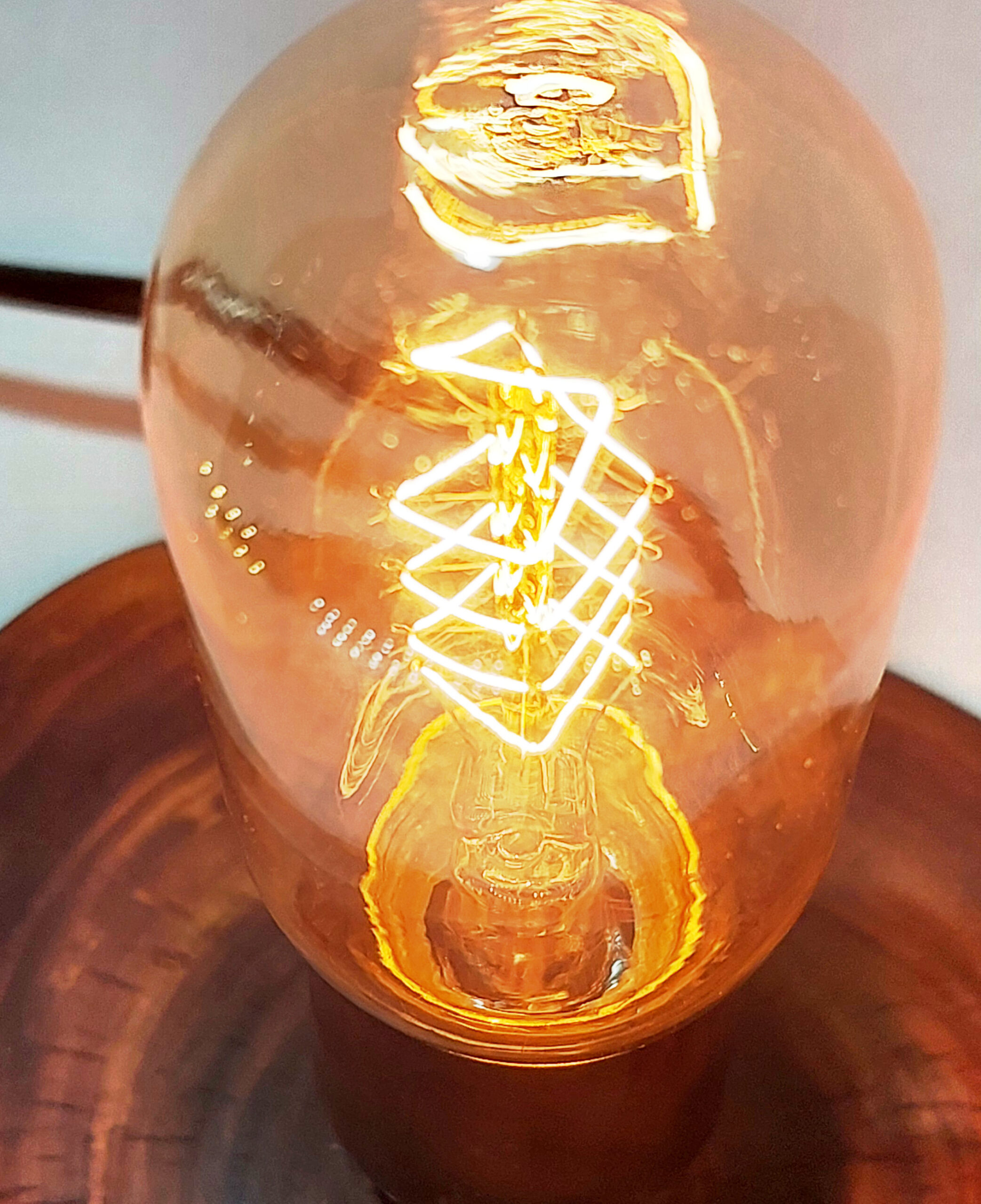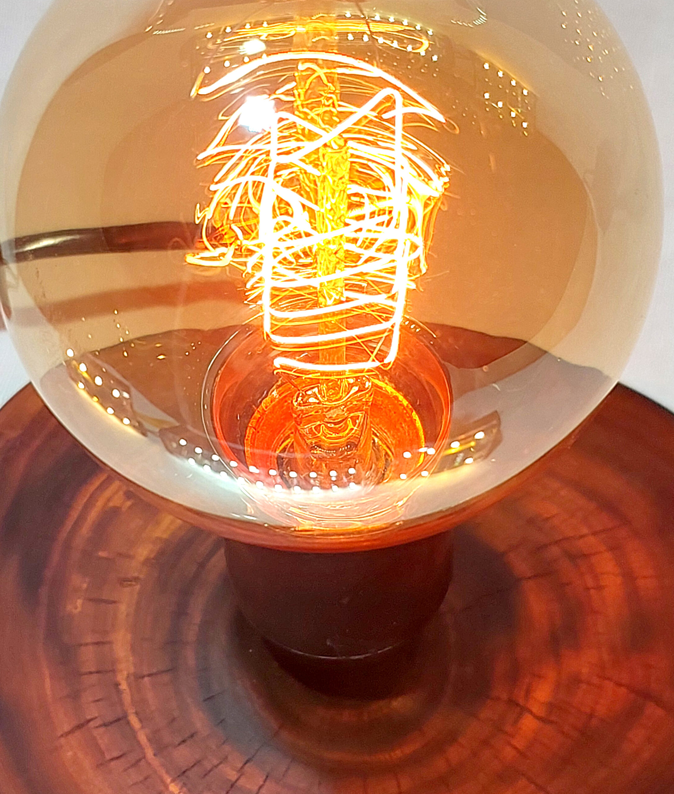 Світильник Вогник – це гармонійне поєднання природної текстури дерева та індустріального стилю. Основа виготовлена з темного ясеня, що має багатий відтінок і унікальний малюнок волокон. Вінтажний карболітовий патрон додає виробу автентичності, підкреслюючи стиль лофт і ретро.