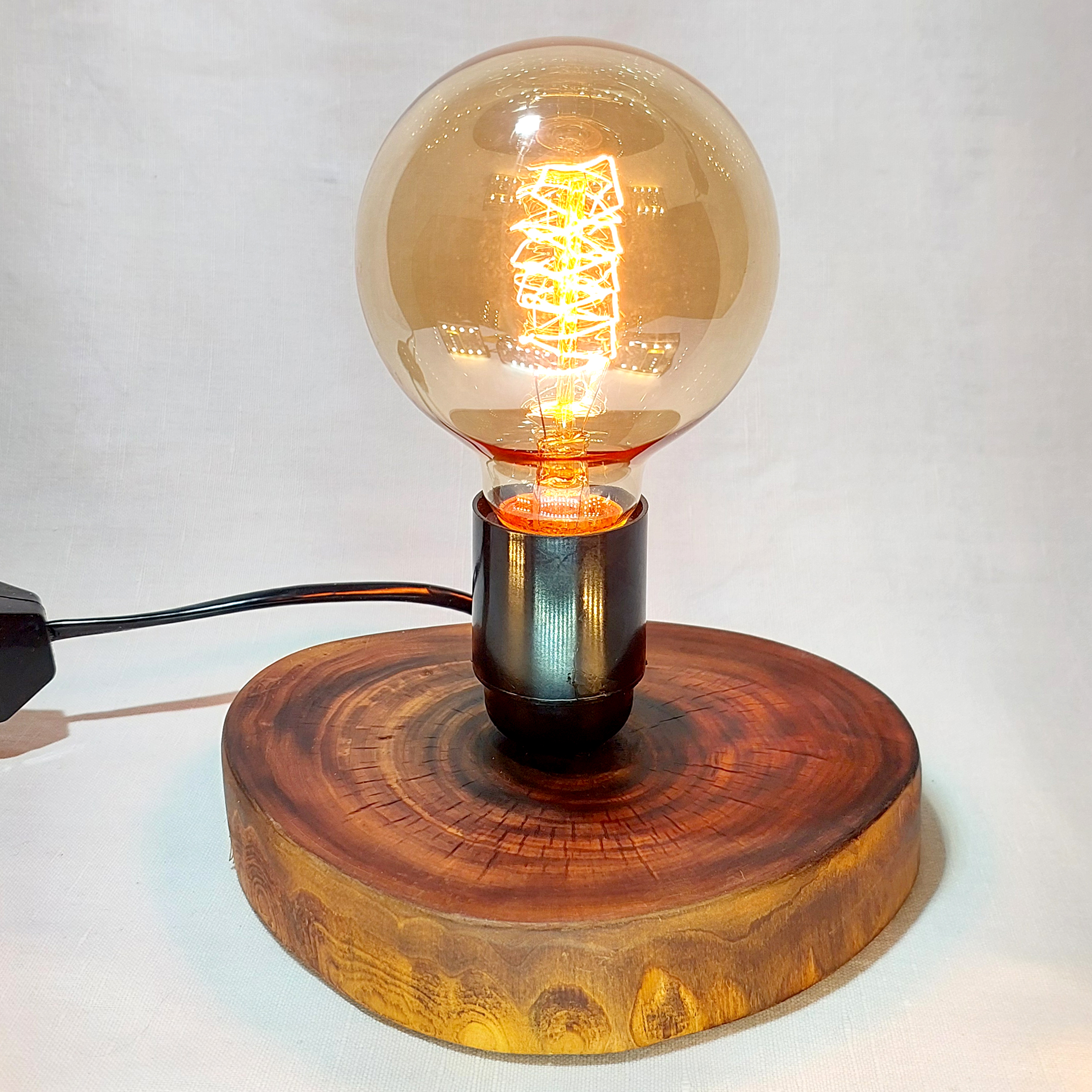Вогник – стильний світильник у лофт-естетиці, що поєднує натуральне дерево та вінтажний карболітовий патрон.
